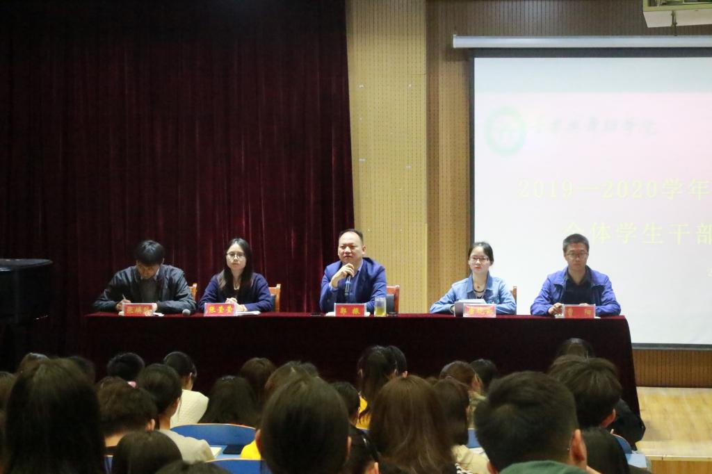 为加强学生干部教育管理,促进学生干部队伍建设,10月21日,学院在艺术楼八音讲堂召开全体学生干部大会。院党委副书记郭振,团委书记张莹莹,辅导员唐晓云、张焕然、曹阳与浦京集团官网百余名学生干部参加会议。会议由张焕然主持。