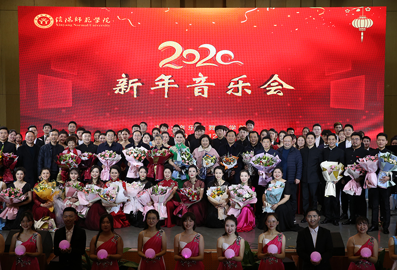 本场音乐会特邀河南歌舞演艺集团副总经理、演出总监、音乐总监、信阳师院客座教授杜宏亚担任艺术总监,涵盖了独唱、合唱、联唱、独奏、重奏、合奏等多种表演形式,精彩纷呈。音乐会在活泼欢快的笛子重奏《跑旱船》中拉开序幕,浓郁的地域特色营造了欢腾的节日氛围;男声联唱《祝酒歌》《我为祖国献石油》《双脚踏上幸福路》《我们走在大路上》唱出了师生敢于有梦、勇于追梦、勤于圆梦的豪情壮志以及昂首奋进的面貌;民乐作品《西域随想》《花梆子》《三六》旋律或明亮轻快、或曲韵悠扬、或昂扬激烈,用丝竹之韵、管弦之声奏响了中国气派的“赞歌”;管弦作品《新春乐》《良宵》展现出春日融融,鸟语花香的新春景象,赞美了今天的幸福生活;女声联唱《毛主席来到咱农庄》《我们的生活充满阳光》《年轻的朋友来相会》《在希望的田野上》热情讴歌祖国站起来、富起来、强起来的伟大进程;双钢琴《红旗颂》气势恢宏,表现了中国人民在党的指引下奋发向上的革命气概,讴歌了伟大祖国蒸蒸日上的繁荣景象;合唱《新的天地》唱出了祝愿祖国腾飞、民族复兴的共同心声,激励师生在把我校建设成高水平师范大学的追梦道路上不忘初心,矢志奋斗。音乐会结束后,校领导亲切慰问了全体演职人员。