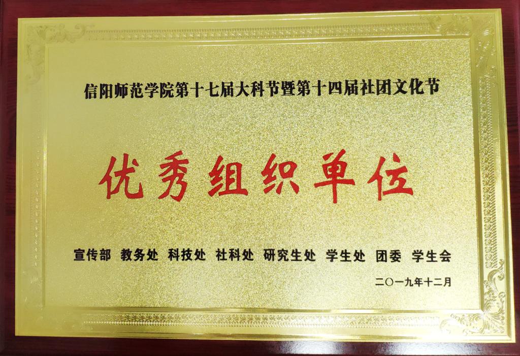 12月30日,我校第十七届大学生科技文化艺术节暨第十四届社团文化节颁奖典礼暨2020年新年晚会在理科楼报告厅举办。校党委副书记郜火星、副校长余本海应邀出席,各相关职能部门负责同志、各社团指导教师与五百余名师生一起参加了颁奖仪式。浦京集团官网社团工作因组织得力、效果显著,荣获第十七届大学生科技文化艺术节暨第十四届社团文化节“优秀组织单位”。