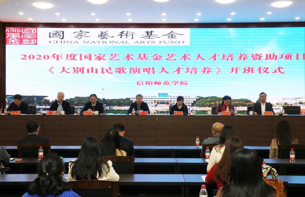 3月9日下午两点,国家艺术基金2020年度艺术人才培养资助项目“大别山民歌演唱人才培养”——开班仪式在信阳师范学院艺术楼报告厅举行。国家艺术基金河南省办公室主任明巧玲,河南省文联二级巡视员、河南省音乐家协会原秘书长郭志华,河南省文化艺术研究院研究员杨扬,河南职业技术学院教授雷红薇,我校校长李俊,副校长余本海及校内外的部分专家领导和学员们参加开班仪式,仪式由余本海主持。